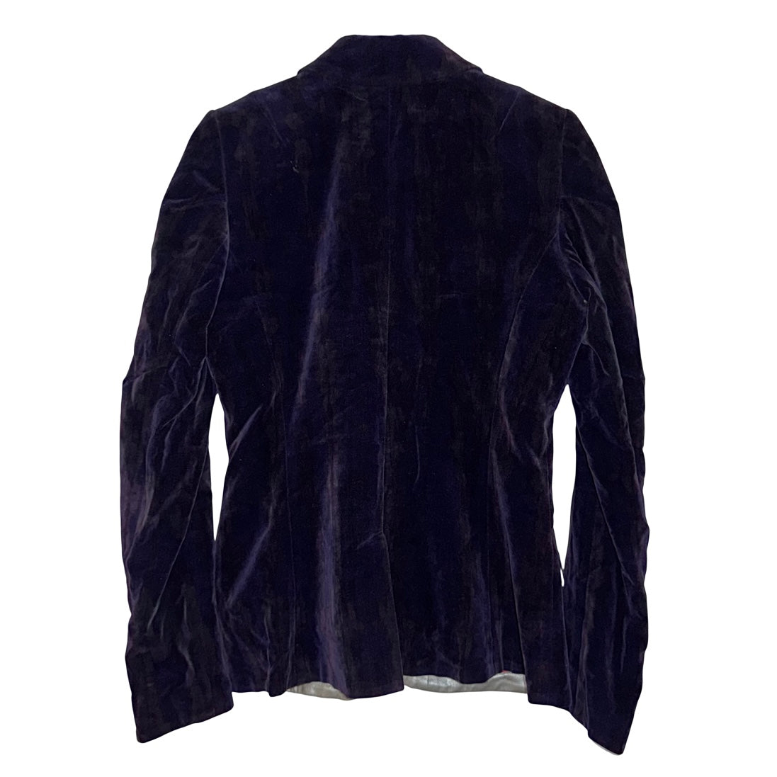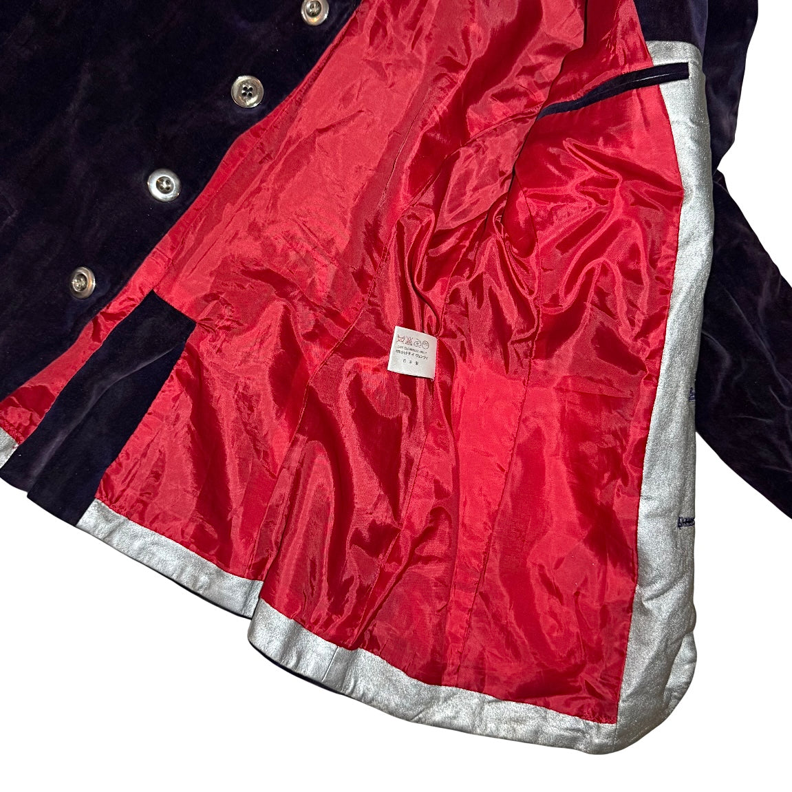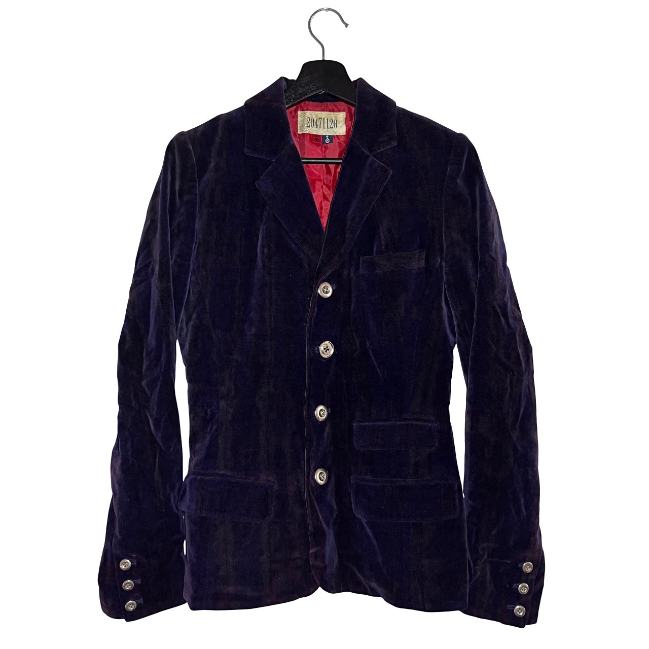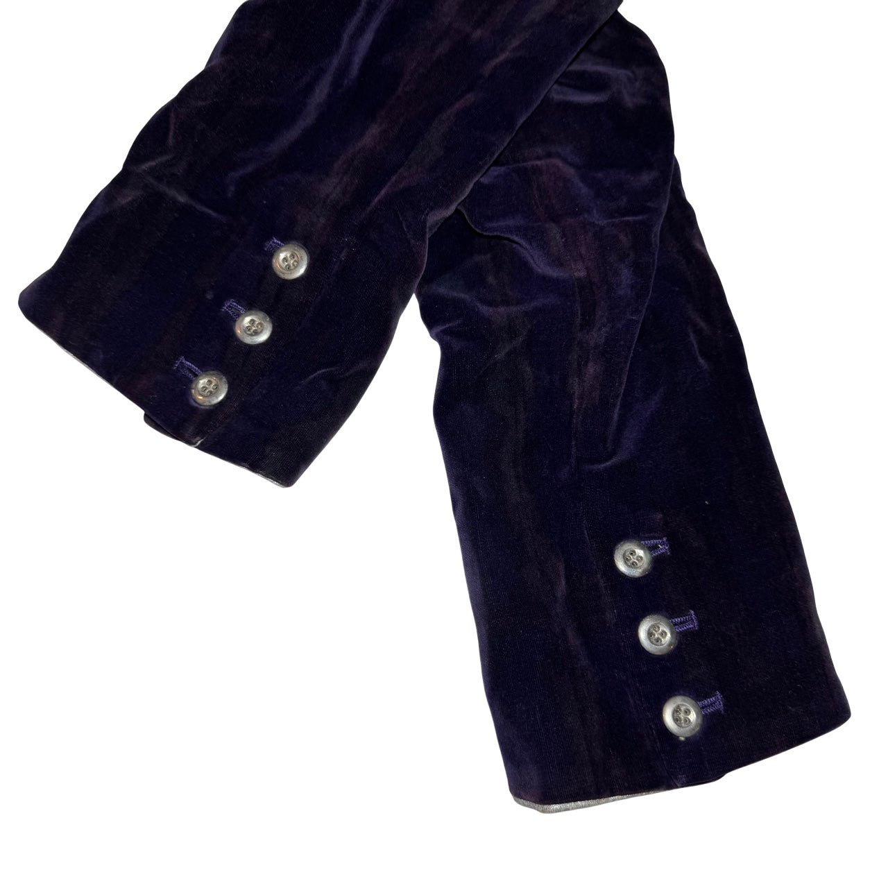 Violet velvet blazer from Japanese cult label "20471120" by Masahiro Nakagawa. Featuring velour body with silver-plated buttons and red cupro lining inside.