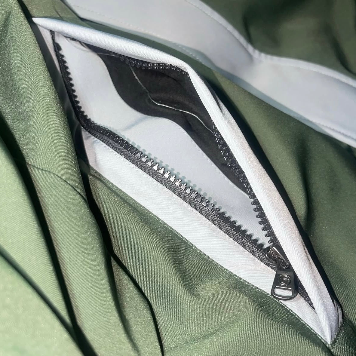 Literally out of this world jacket from the 2018 Colmar A.G.E. (Advanced Garment Exploration) x Shayne Oliver collaboration project. Fully reversible, two-way zipper and velcro closure both sides, two detachable hoods with bungee drawstrings, detachable real fur and snap buttons on them which can be attached together to create a "mohawk" look, basically two parka jackets combined. Features multiple flap and zipper pockets, total of four arms and inset rib knit cuffs.