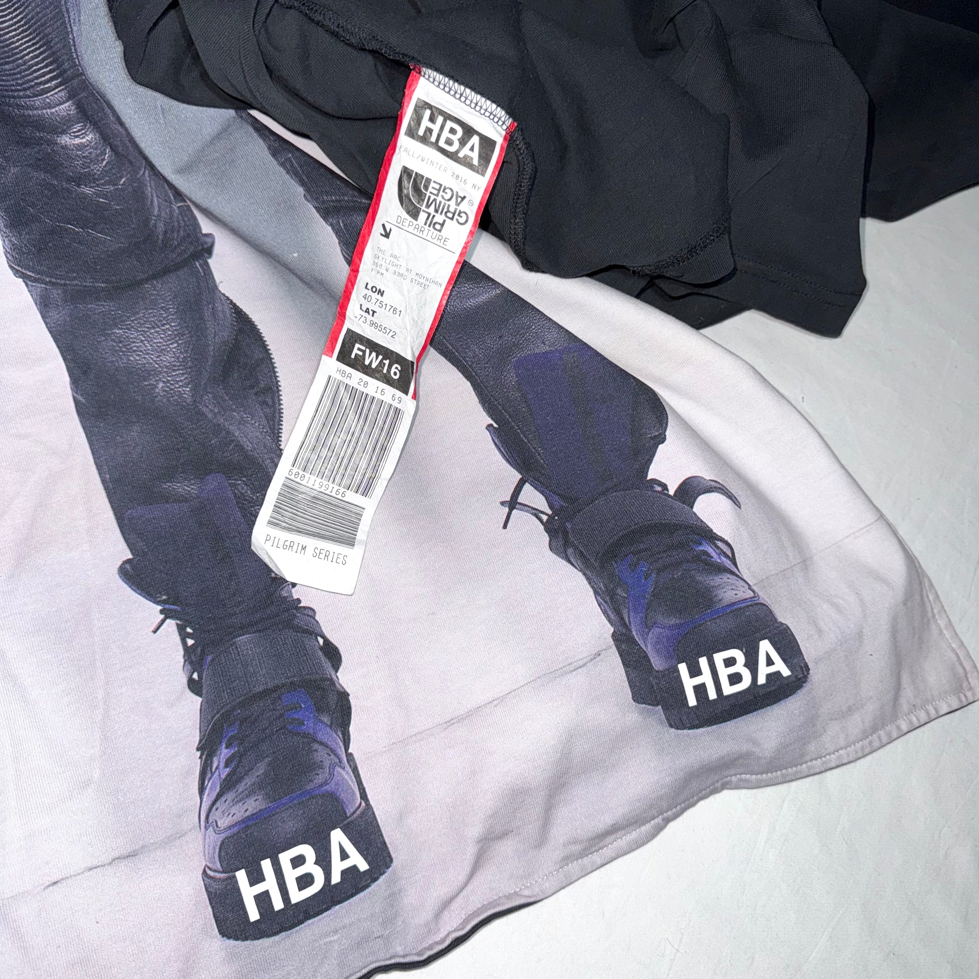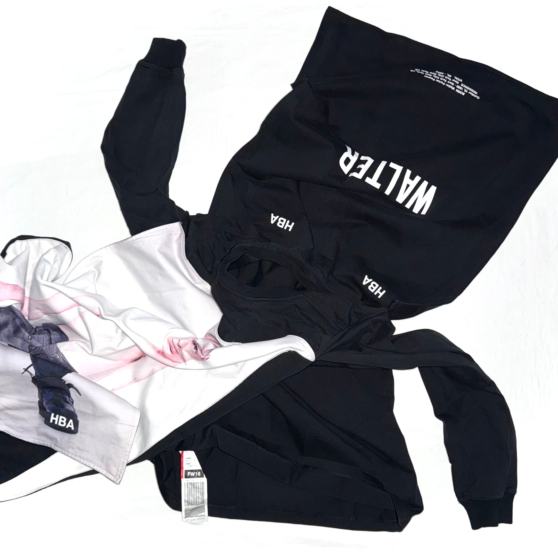 Extremely rare if not the rarest runway piece from HBA's FW16 "Pilgrimage". Regular longsleeve with big poster panels both sides, made out of very thick high quality cotton with 3D prints. Features a huge image as well little info of Walter Pearce, casting director that is close friends with the HBA team and casted many of their models at the time.