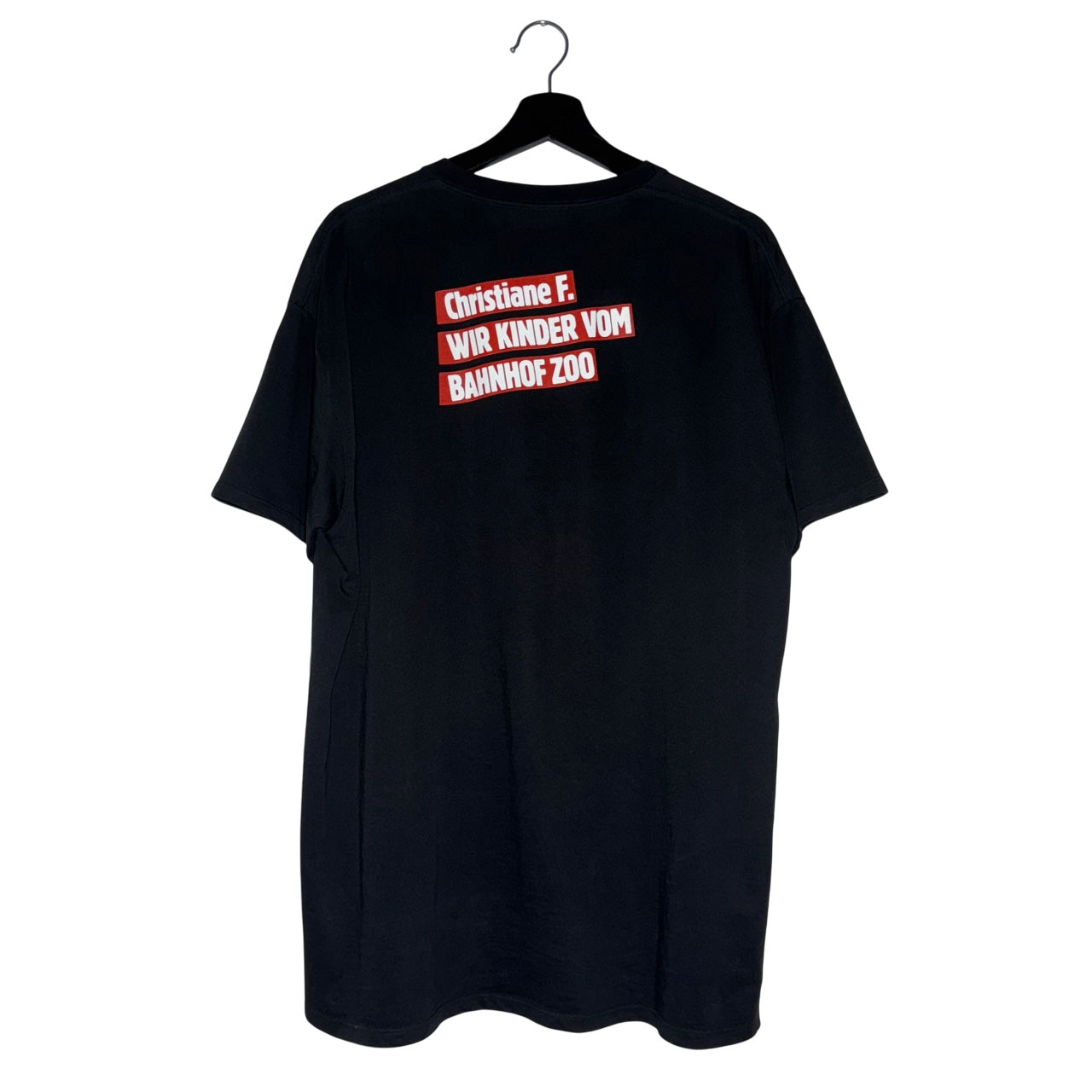 The shirt features huge portrait print of the main character "Christiane F" on the front, the movie title on the back and "R" embroidery near the hem.