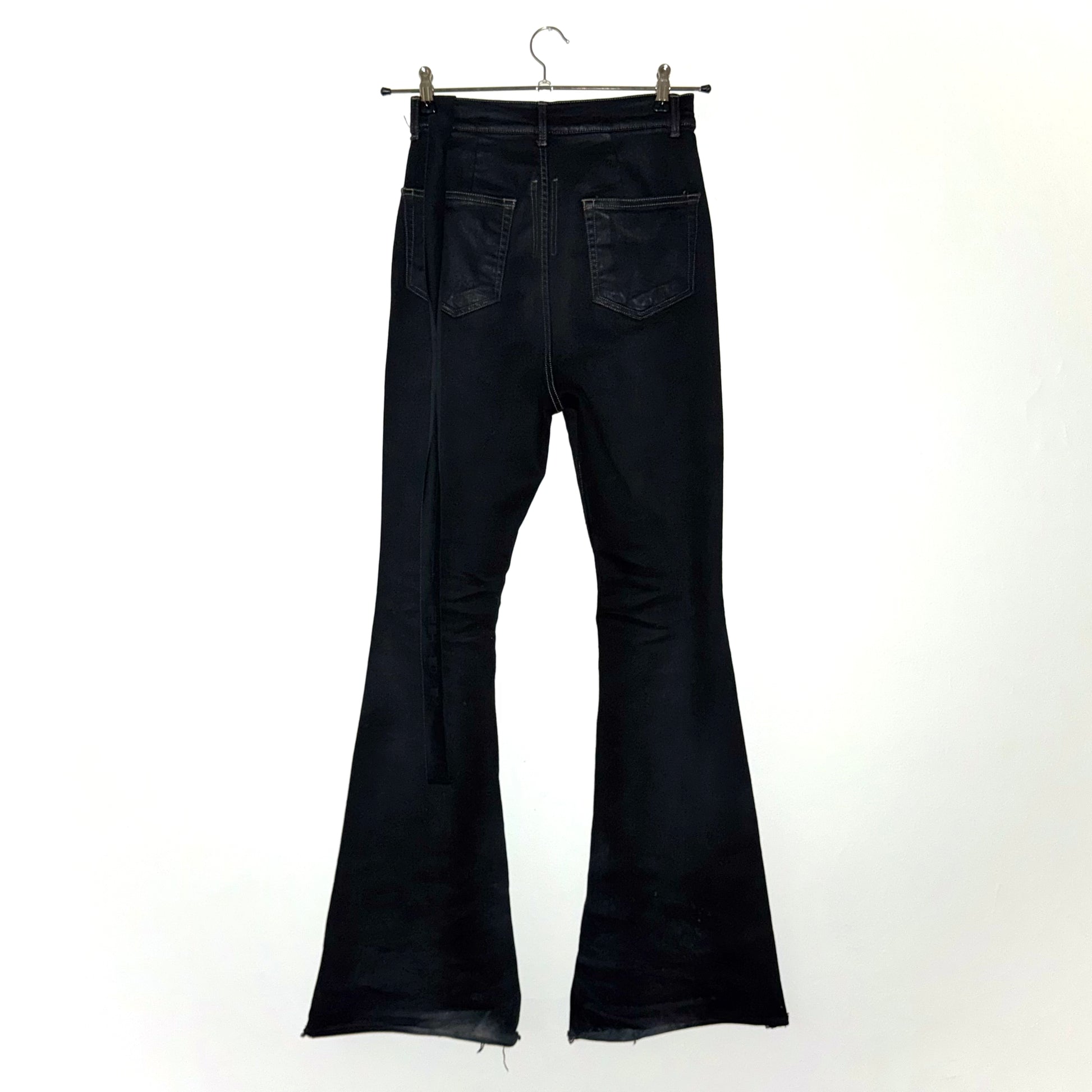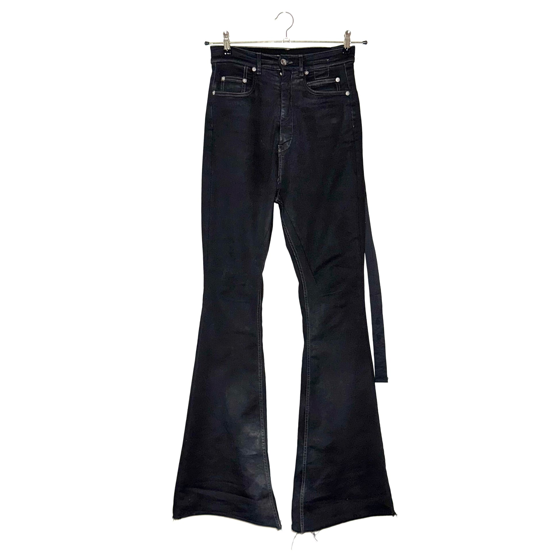 The perfect flared denim, these denims with extremely long inseam features high waist, button and zip closure and a slightly waxed finish and of course the DRKSHDW tag. Comes with original tags. The inseam has been altered.