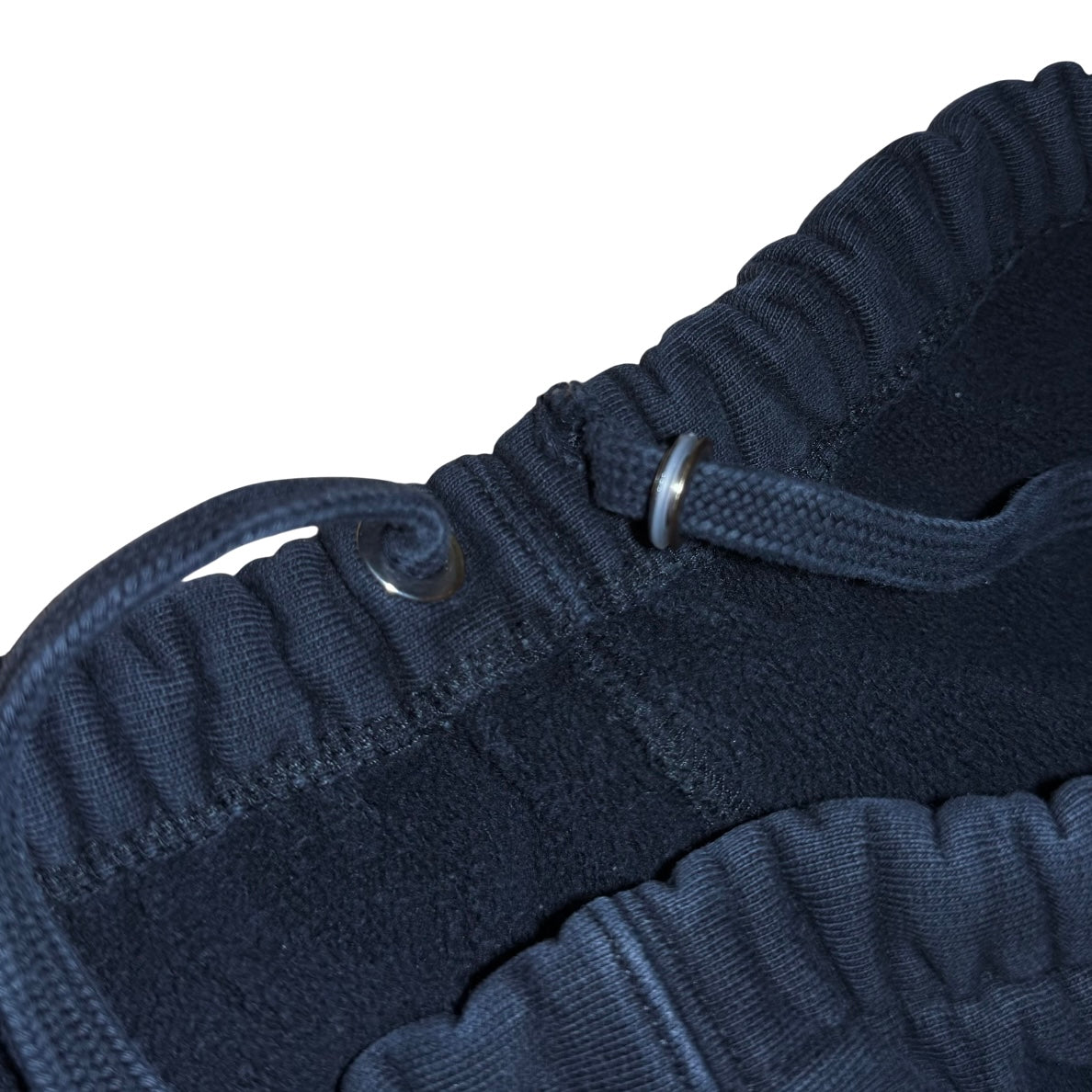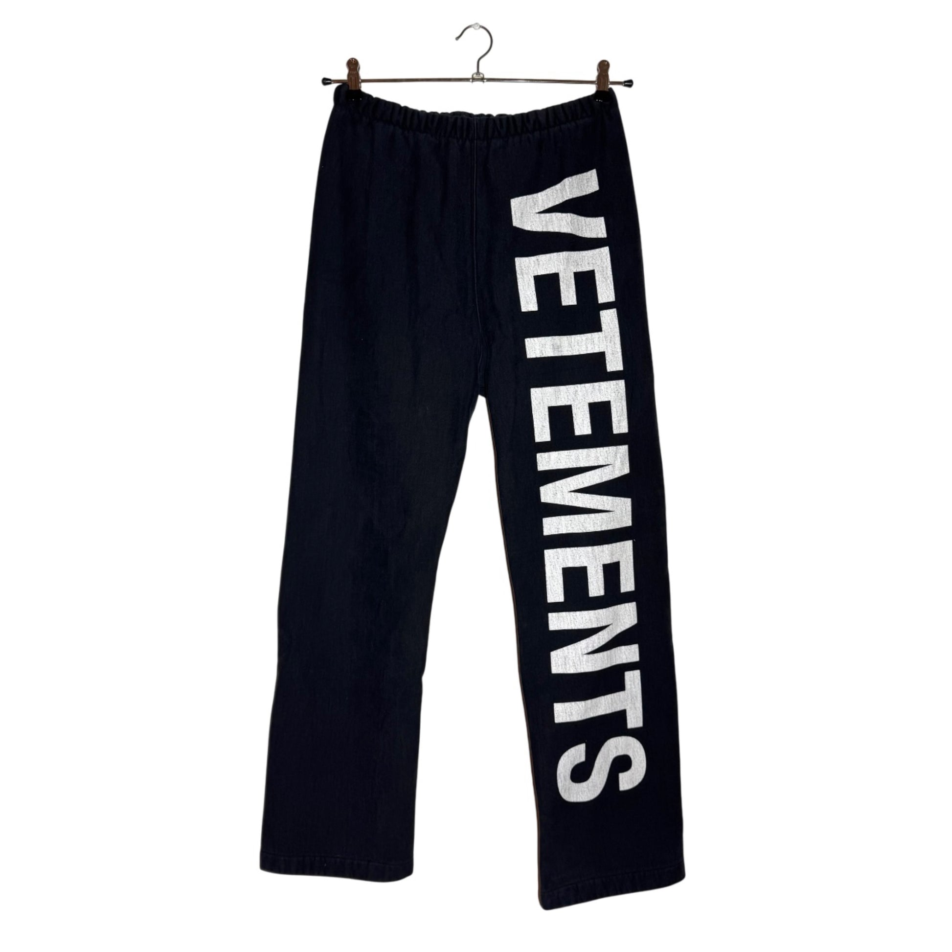 Classic black sweatpants with big spell-out logo print on the left leg. Relaxed straight fit featuring small exterior tag on the back and adjustable waist by drawstring. No pockets.