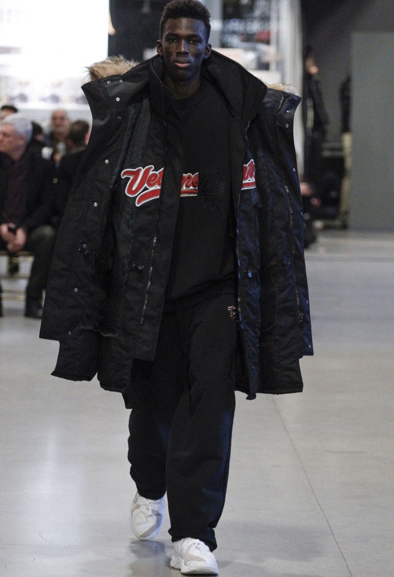 Part of the iconic AW17 runway look including the famous double layer parka, with all the pieces featuring the baseball-logo inspired "Bro" logo embroidery.