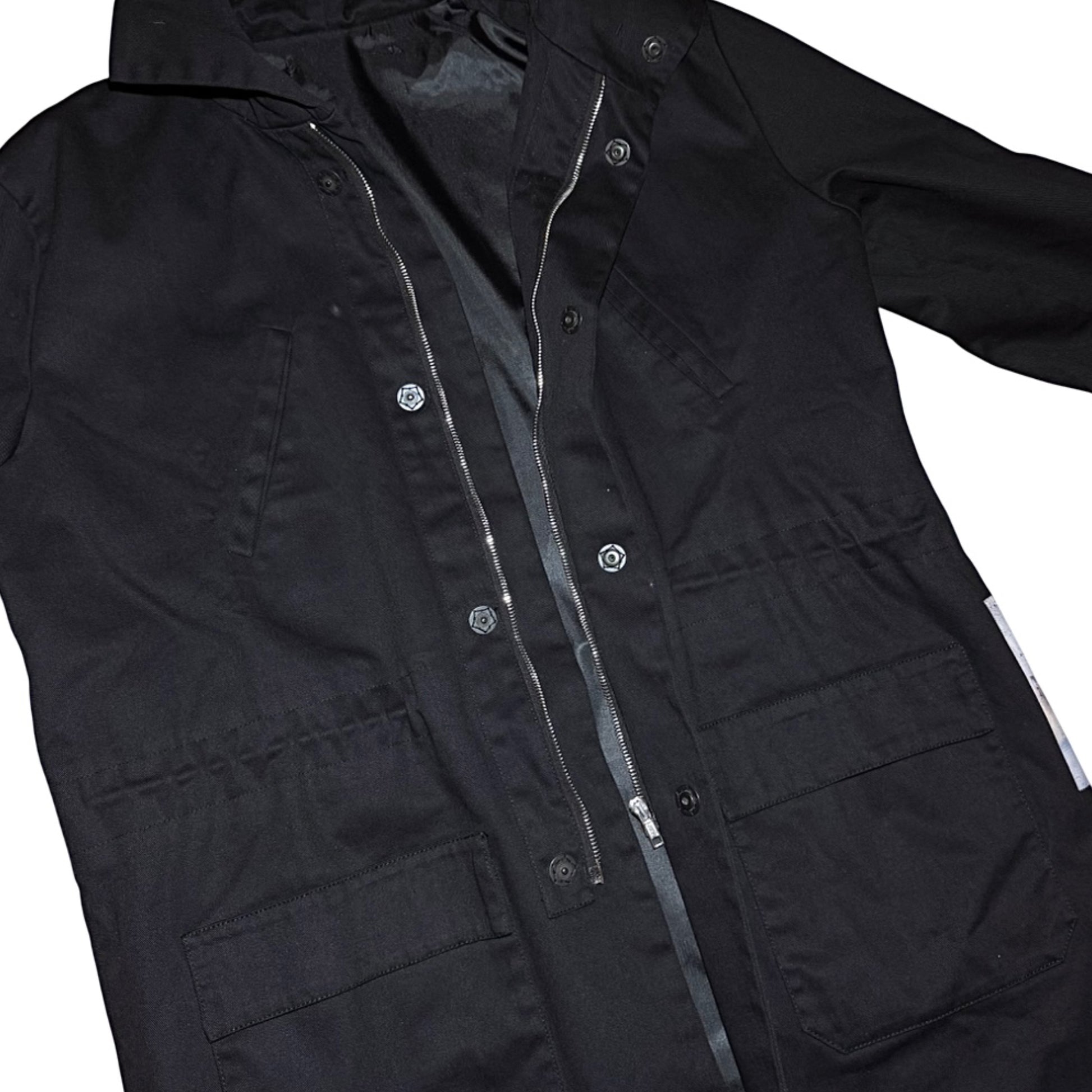 Elegant black cotton-twill parka with a satin lining, an attached hood, four on-body front pockets, zipper and snap-button closure and a classic fishtail hem. Adjustable fit with drawstrings. For the spring/summer 2015 collection, Raf Simons poured inspiration from the past and present of his personal life. This beautiful parka features printed photo collage on the back including Japanese imagery, some old-school pictures of Raf's parents and even a self portrait of him.